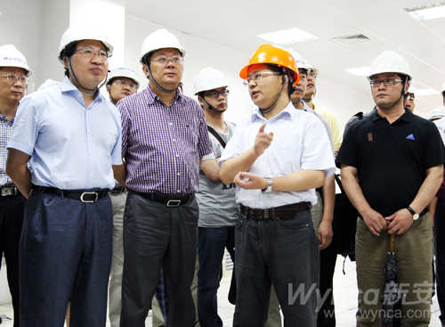隨后,在林加善總裁的陪同下,浙江省經信委醫藥石化行業管理辦公室主任周土法、副主任葉秉海,浙江省石油和化學工業行業協會會長杜世源、秘書長張旭等帶領30多家省石化行業龍頭企業代表參觀集團馬目生產基地。圖為林加善總裁在新安邁圖向參觀人員介紹情況。