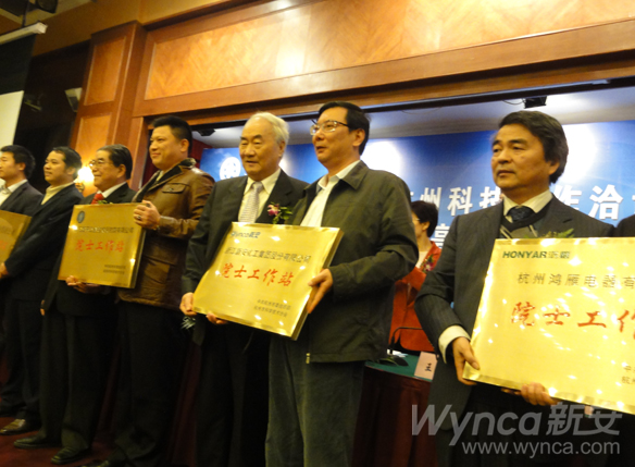 瀏覽量:5102 11月16日,在杭州舉行的2010年“中國科學(xué)院—杭州科技合作洽談會暨第七屆京滬杭(國際)高科技產(chǎn)業(yè)化交流活動”中,杭州市委常委、副市長沈堅等市相關(guān)領(lǐng)導(dǎo)為“杭州院士專家工作站”授牌,公司總經(jīng)理季誠建和公司首位駐站的中國工程院沈寅初院士一起鄭重的接過了院士專家工作站的匾牌。